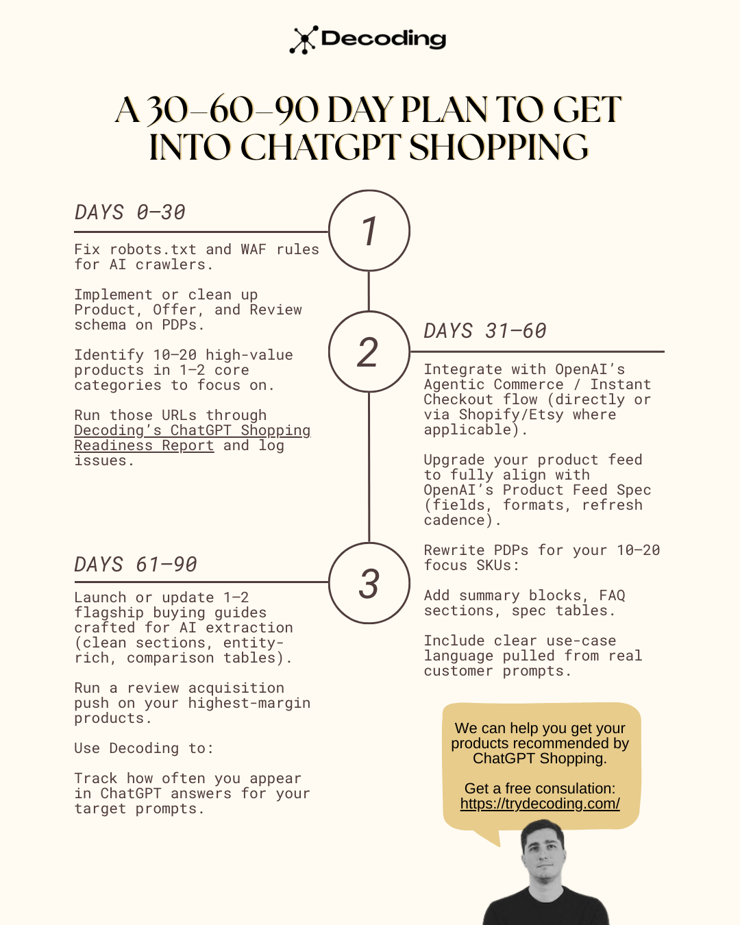 If you’re on Shopify or Etsy, much of this will flow through those platforms as they deepen their ACP integrations, but you should still care about feed quality and PDP structure.
