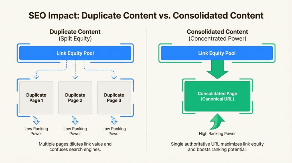 Don’t let duplicate content silently cap your organic potential. Fix it now, and watch your consolidated pages climb the rankings.