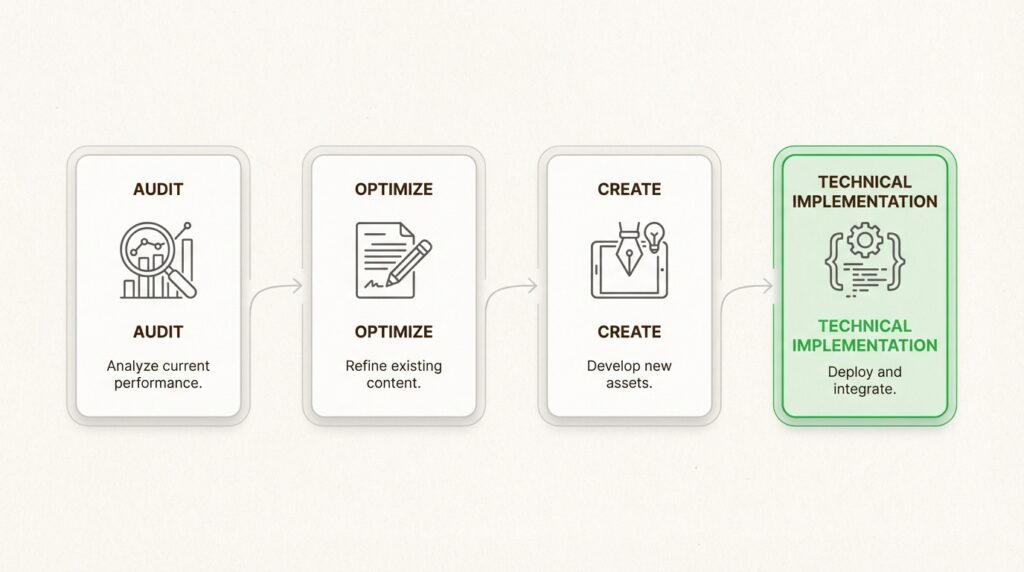 Your immediate action items: audit your current content using our Free AI Content Audit, identify your highest-priority pages for optimization, and begin applying the 6-pillar framework systematically.
