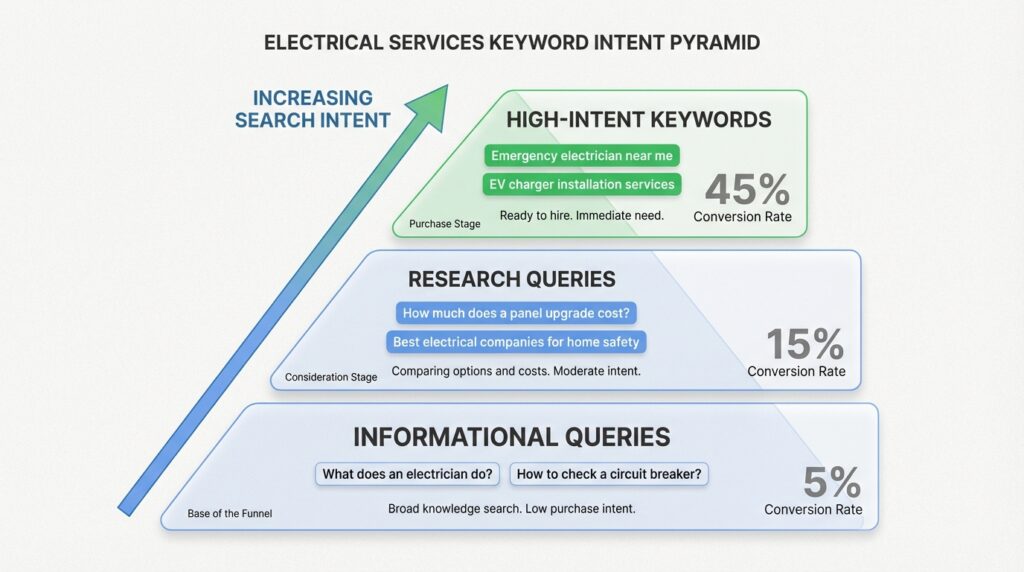 Not all keywords are created equal. Some attract browsers. Others attract buyers. For electricians, the difference between a high-intent keyword and a low-intent one can mean the difference between a tire-kicker and a booked job.