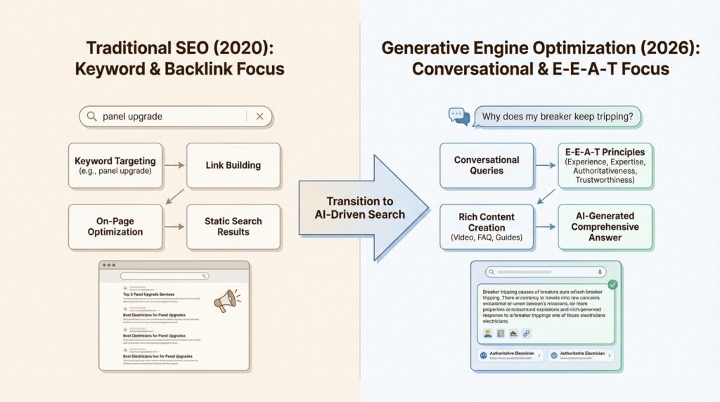 This shift requires a new approach: Generative Engine Optimization (GEO). Here’s what electricians need to know.