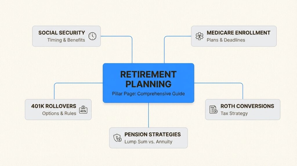Instead of writing isolated blog posts, build topic clusters. Start with a comprehensive pillar page on a broad topic like “Retirement Planning.” Then create supporting articles on specific aspects: Social Security timing, Medicare enrollment, 401(k) rollover strategies, Roth conversion rules.