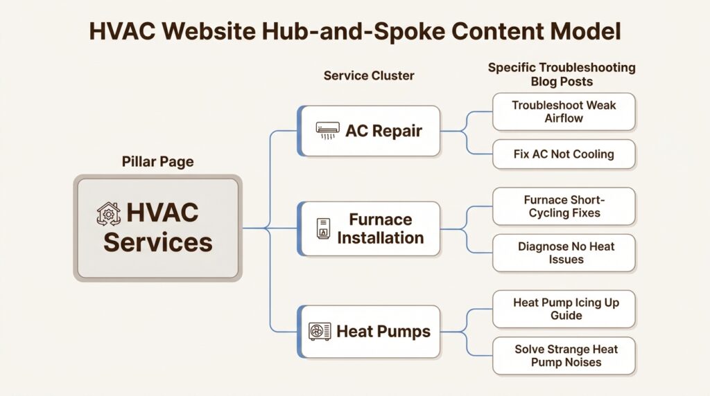 Blog content builds authority and captures long-tail traffic. Write about what your customers actually ask: “How often should I change my AC filter?” “Why is my furnace making that noise?” “What’s the difference between a heat pump and a furnace?”
