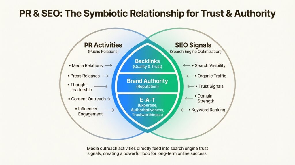 Let’s get specific about the mechanisms. PR affects SEO through three primary channels: backlinks, brand signals, and E-A-T validation.