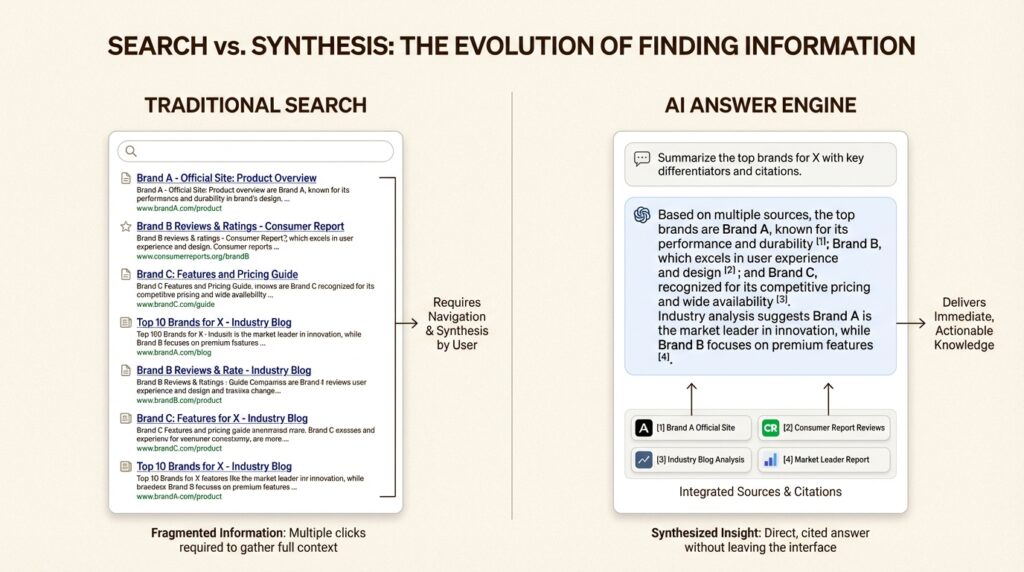 The search landscape is undergoing its biggest transformation since Google launched. AI answer engines like ChatGPT, Perplexity, and Claude don’t just index pages and rank them. They synthesize information from multiple sources to generate answers.