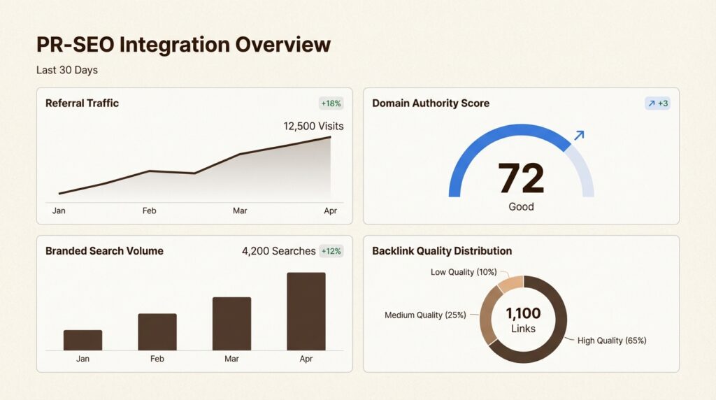 Ranking improvements: Track target keyword positions before and after PR campaigns. High-authority backlinks often produce ranking improvements within weeks.