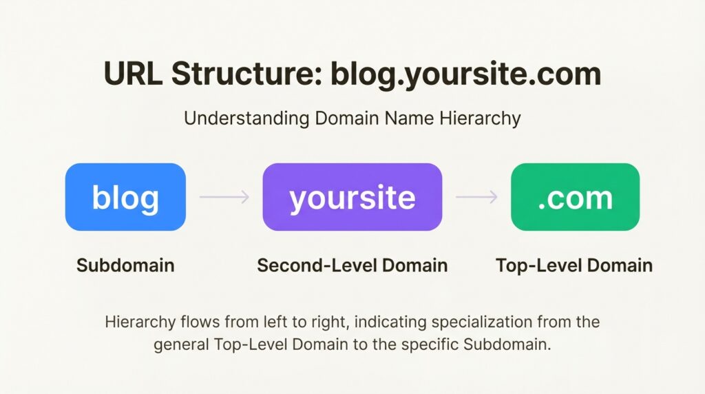 So in blog.yoursite.com, “blog” is the subdomain. In yoursite.com/blog, “/blog” is a subdirectory (or subfolder). The difference matters more than you think.