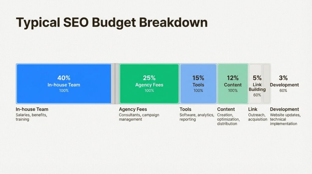 Before you can measure returns, you need an accurate picture of costs. SEO investment typically includes several categories: