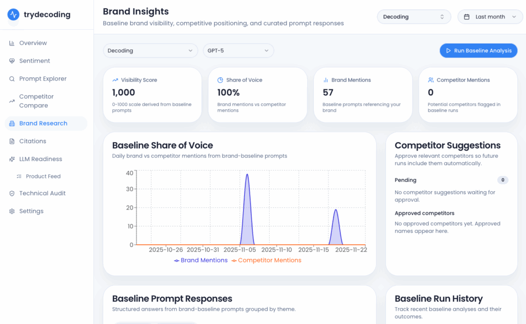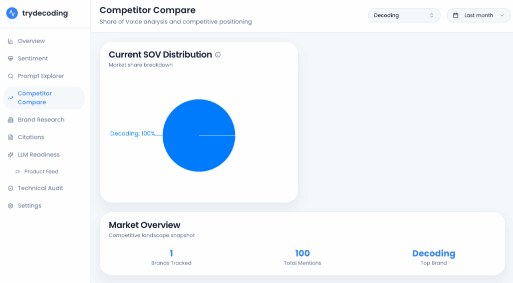 Yes—per prompt. See how often competitors appear and how they’re positioned.